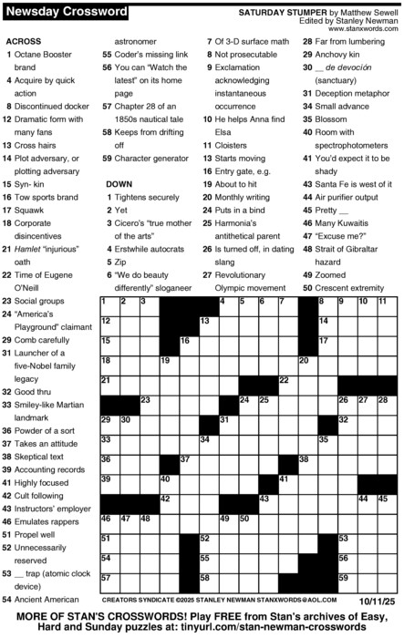 Stan Newman crafts a fresh and challenging puzzle every day of the week! Stay sharp and challenge yourself to solve each and every one.